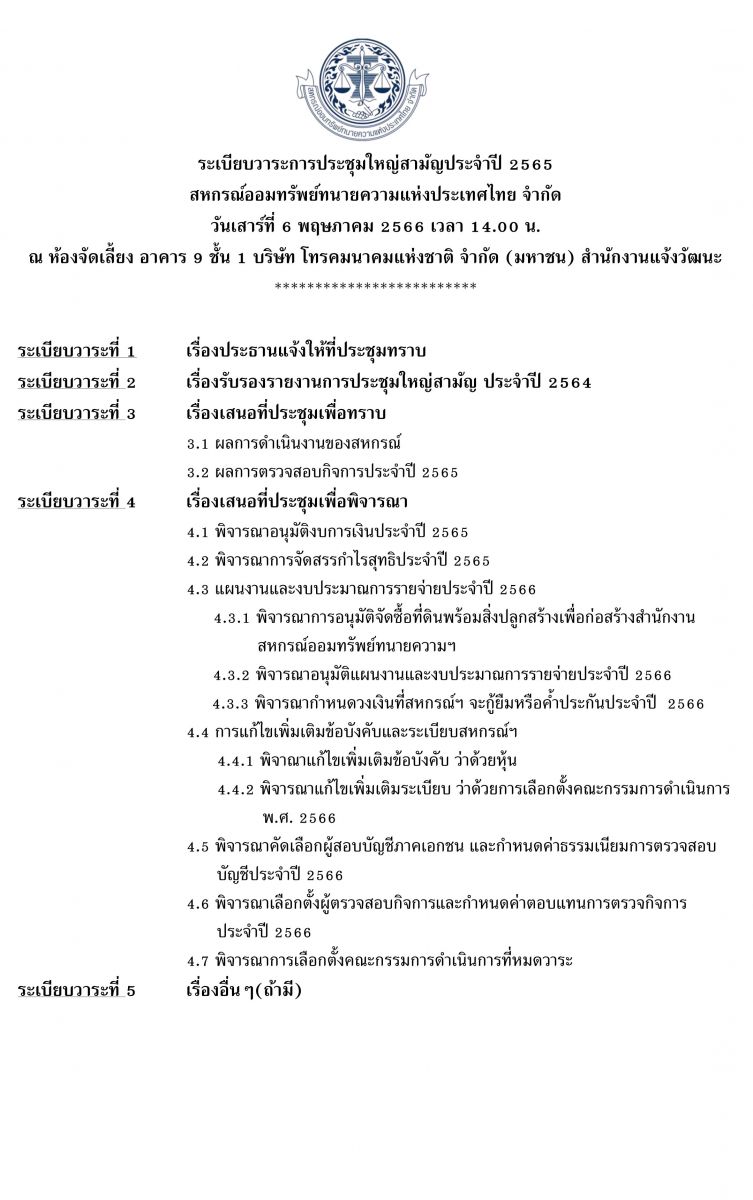 ขอเรียนเชิญสมาชิกสหกรณ์ออมทรัพย์ทนายความแห่งประเทศไทย จำกัด ทุกท่านเข้าร่วมประชุมใหญ่สามัญประจำปี 2567