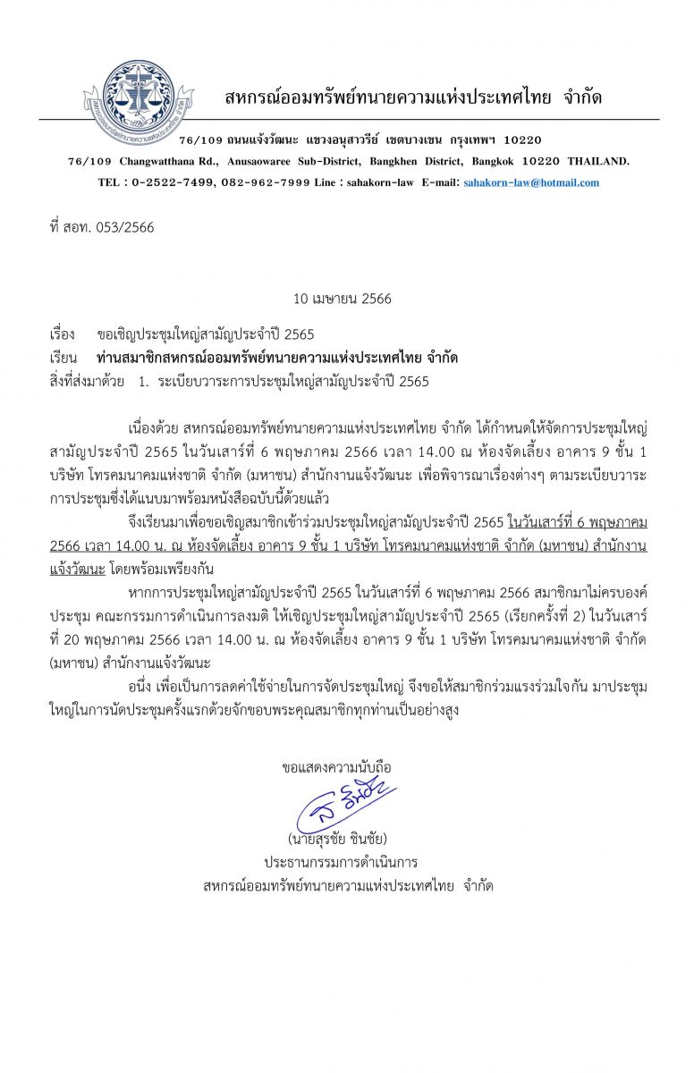 ขอเชิญประชุมใหญ่สามัญประจำปี 2565