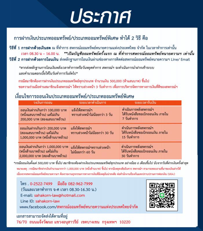 ประกาศ !!! สหกรณ์ออมทรัพย์ทนายความแห่งประเทศไทย จำกัด เปิดให้บริการชำระเงิน การโอนเงินด้วย QR CODE
